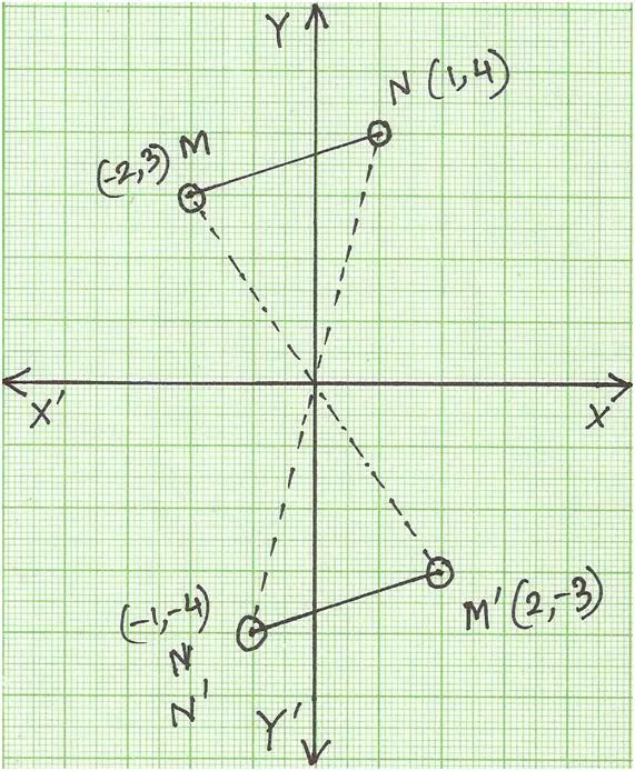 segment MN joining the point M (-2, 3) and N (1, 4) on the graph paper. Rotate