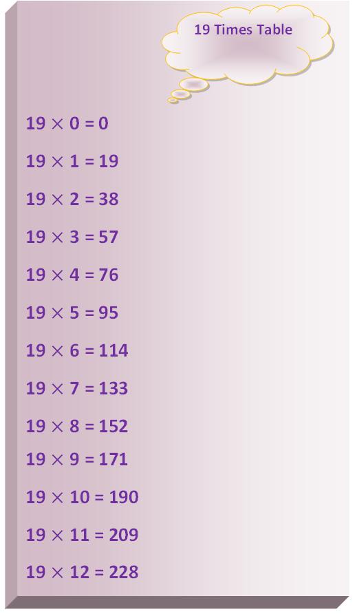 In 19 times table we will memorize the multiplication table. Printable multiplication table is also available for the homeschoolers.