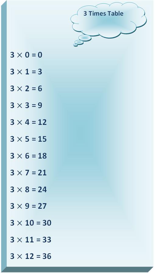 In 3 times table we will memorize the multiplication table. Printable multiplication table is also available for the homeschoolers.