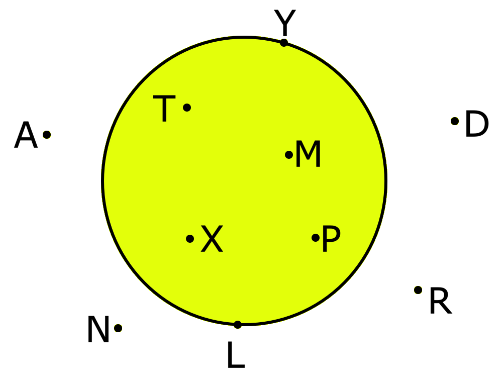 6. Observe the figure and identify the points to be interior, exterior and on the circle.