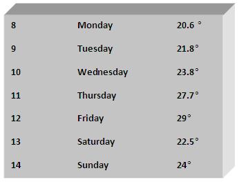 1. The maximum temperature of Miami during 8th September to 14th September is as follows:
