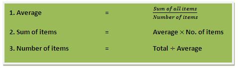 Average = \(\frac{\textbf{Sum of the given Quantities}}{\textbf{Number of Quantities}}\)