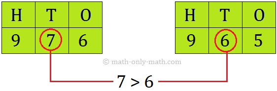 If digits at Hundred-place and ten’s place are equal, the rules to compare single digit numbers are considered.