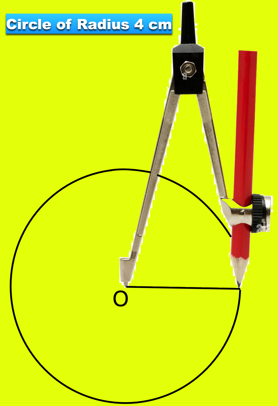Step I: Open the compass such that its pointer be put on initial point (i.e. O) of ruler / scale and the pencil-end be put on a mark say 3 cm (Let the radius of the circle be 3 cm).