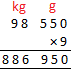 2. 9 bags of sugar are kept in a store room. Each bag weighs 98 kg 550 g. What is the total weight of all the bags?