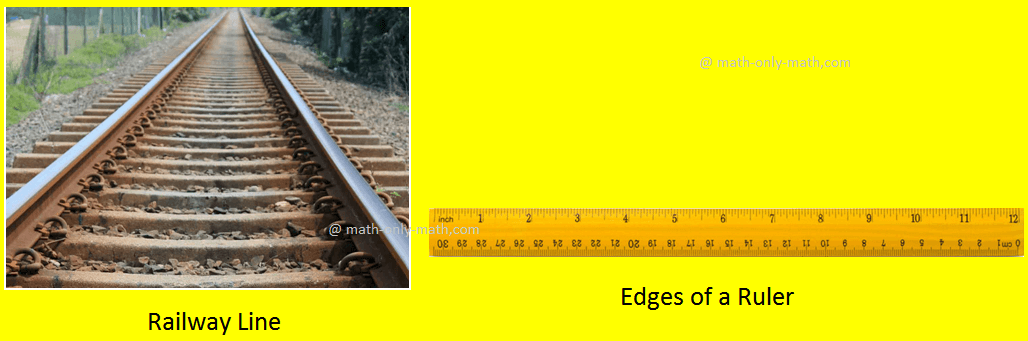 The opposite edges of a ruler, rail lines, cross-bars of the window, etc. are parallel lines.