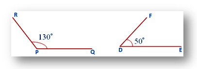 Again, ∠QPR and ∠EDF are supplementary angles as ∠QPR + ∠EDF = 130° + 50° = 180°.