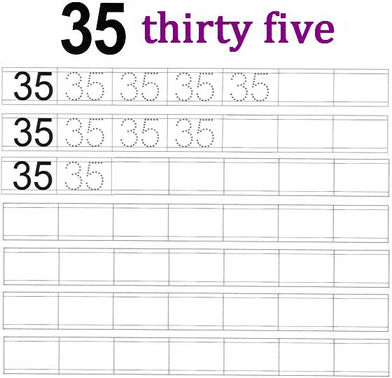 Preschoolers and homeschoolers can practice these printable preschool worksheets on numbers to make the kids handwriting perfect. Parents and teachers can take the printouts of these worksheets on numbers and help the kids to practice these worksheets which are absolutely free. These worksheets can be access by anyone from anywhere. After practicing this worksheet kids can learn to write number 35 on their own.
