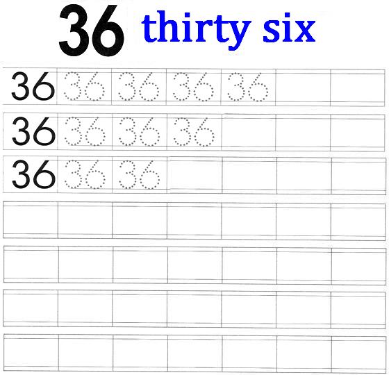 Preschoolers and homeschoolers can practice these printable preschool worksheets on numbers to make the kids handwriting perfect. Parents and teachers can take the printouts of these worksheets on numbers and help the kids to practice these worksheets which are absolutely free. These worksheets can be access by anyone from anywhere. After practicing this worksheet kids can learn to write number 36 on their own.